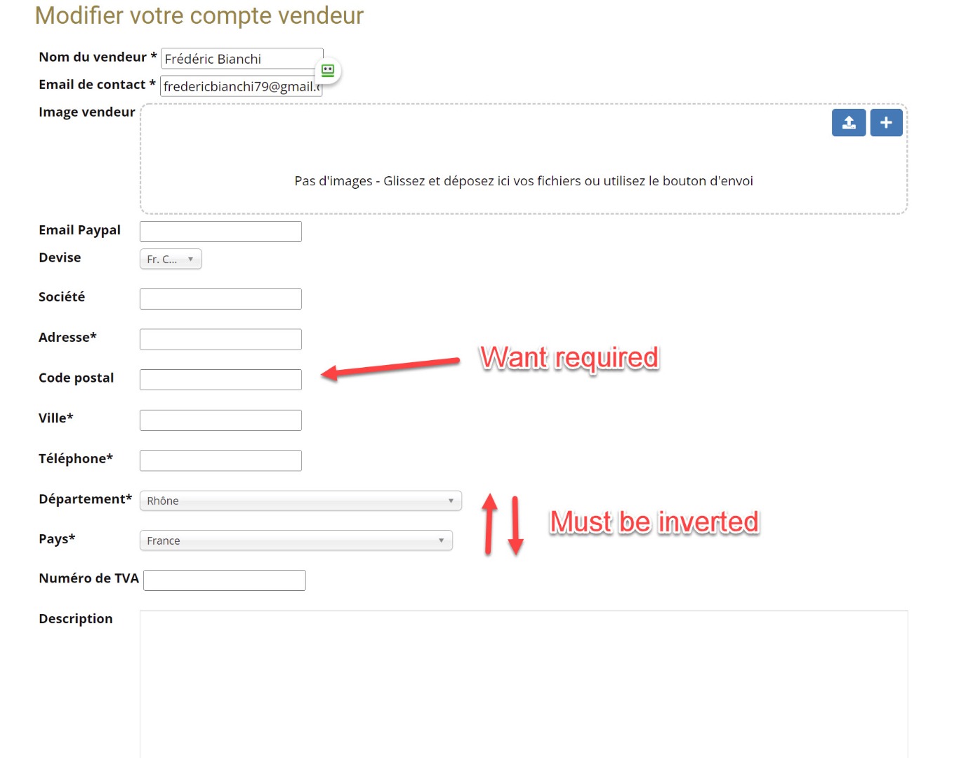 Also, i cant fond where put required fields. If i go to the Hikashop custom fields, it dos not change anything in the vendor fields.