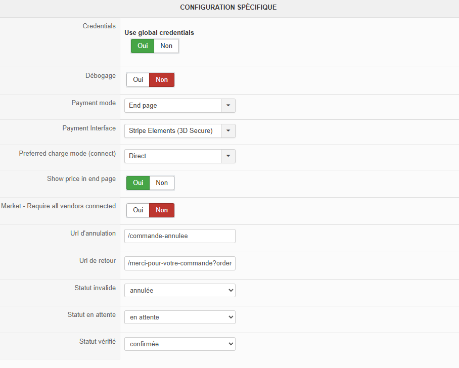 Au niveau de votre problématique Stripe, il nous faut plus de détails sur la configuration du plugin ; le mode "legacy" va être fonctionnel mais ne va pas offrir le 3DSecure (nécessaire à certaines banques).