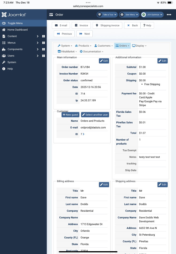 Can you please provide a screenshot of your HikaShop emails (to see what is enable or disable) so I can confirm my suspicious?