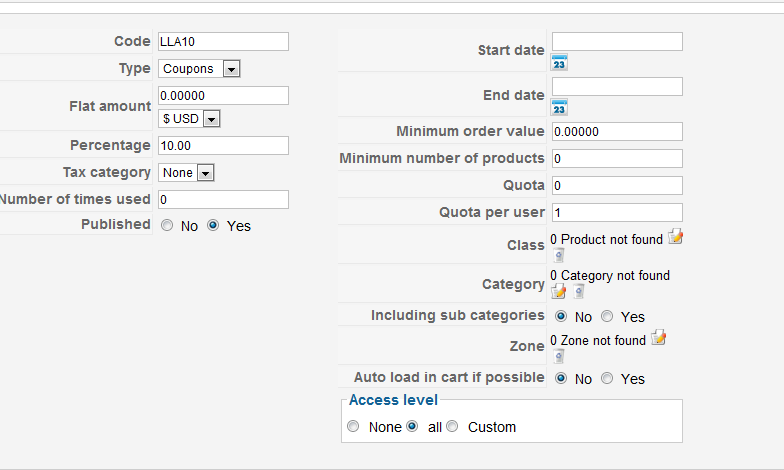 Thanks. The error message went away but the coupon I set up is applying the coupon "automatically" when I added a coupon code. The coupon code was set to not "auto apply." Please advise since it looks like it's doing what a discount type is doing.