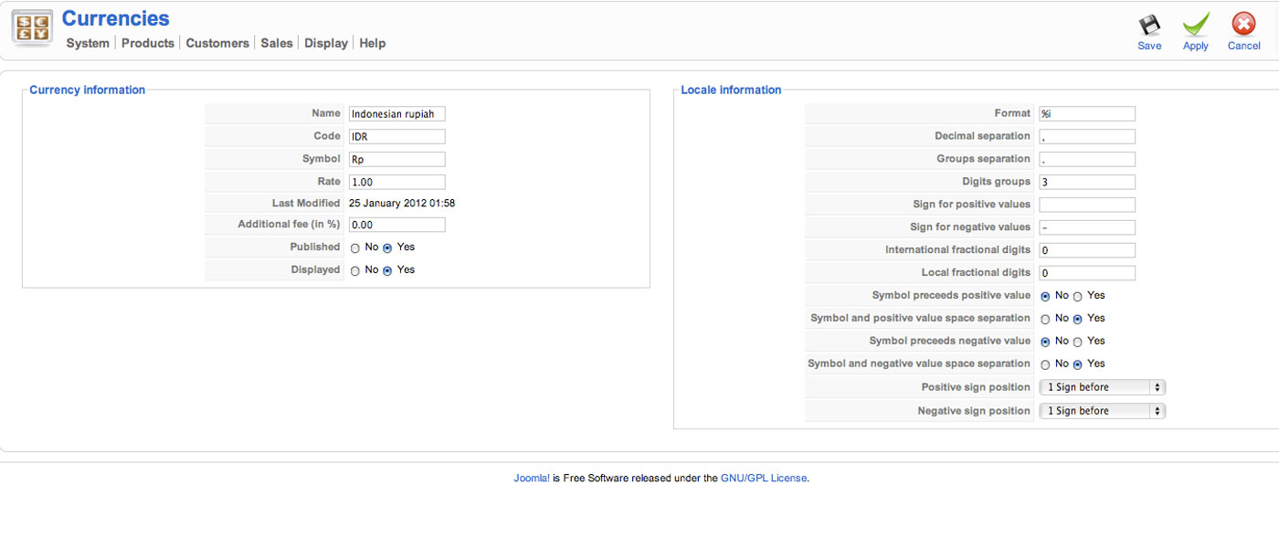 Sure. I choose indonesia rupiah currency. Attached the screen shot of the configuration.