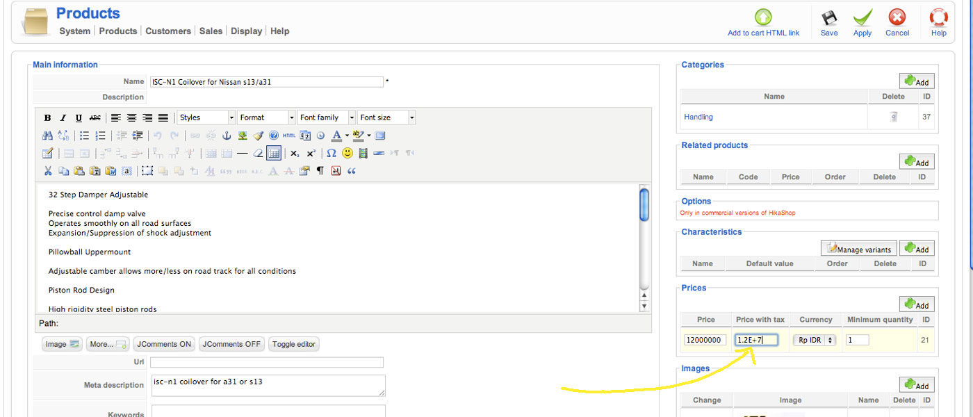 I also found another clue, when I input the price 12000000, the next field "price with tax" become 1.2E+7.