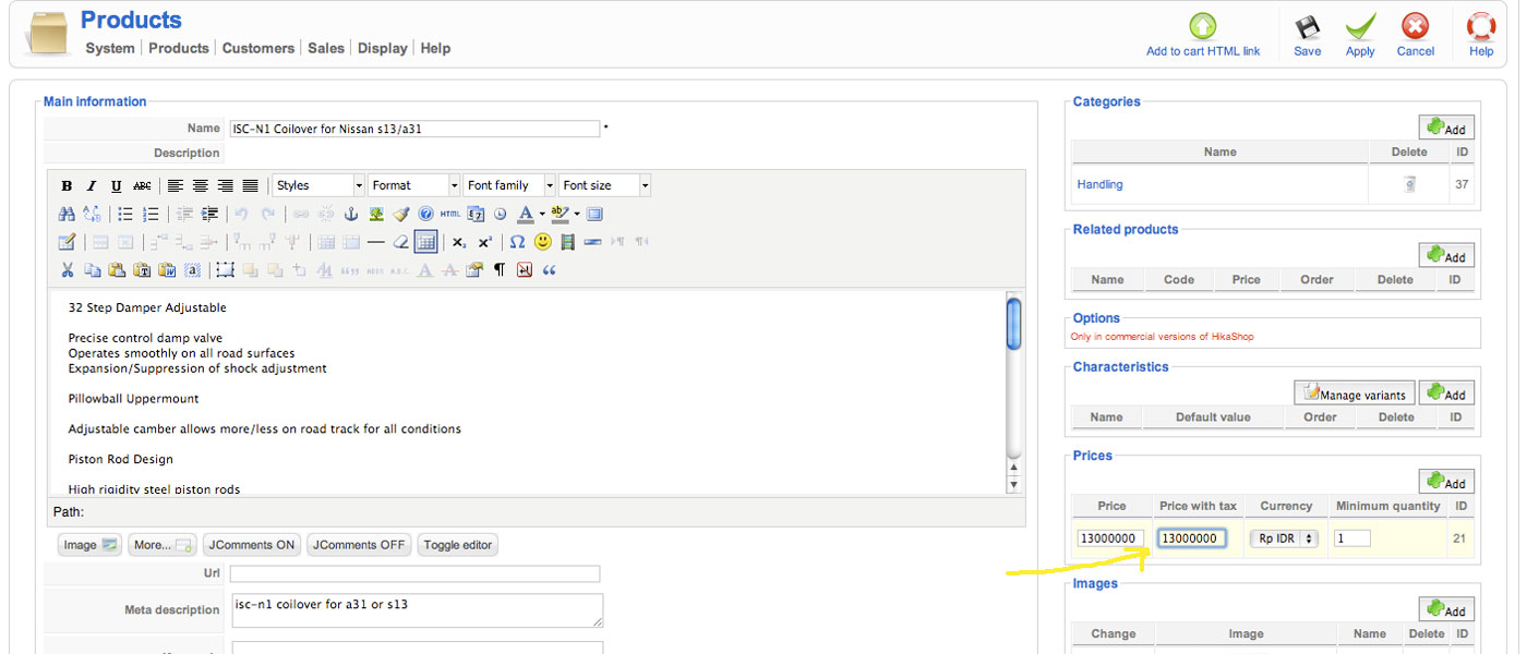But when I input 13000000, the next field "price with tax" are normally automatic shown 13000000 too.