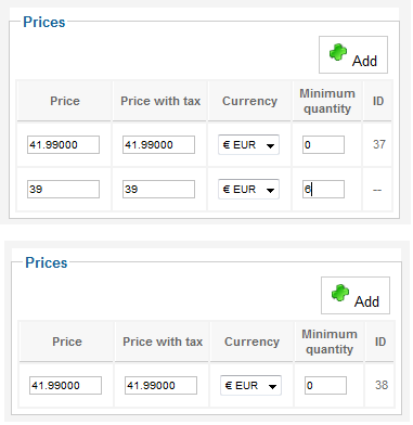 In short, we changed the javascript function addPriceRow which handle that. You can edit the file administrator/components/com_hikashop/views/product/tmpl/price.php