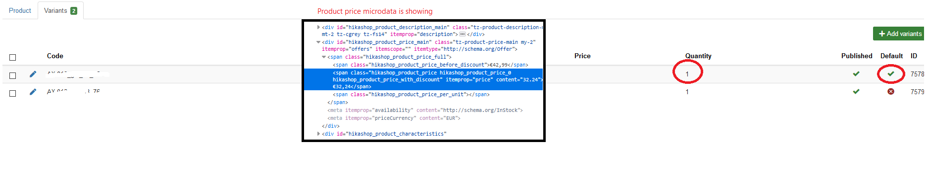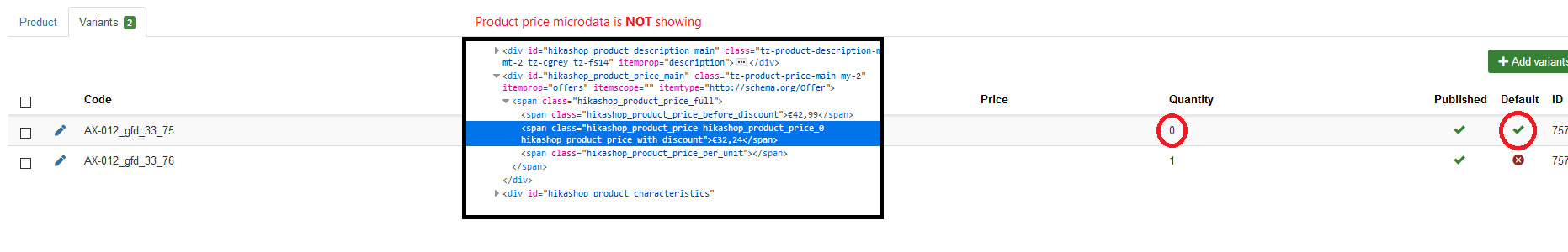 However, search engines do not process the javascript on the page. Which means that even if you see the itemprop missing in your developer tools, the search engines don't see them missing as the variant data wasn't replaced dynamically for them.
