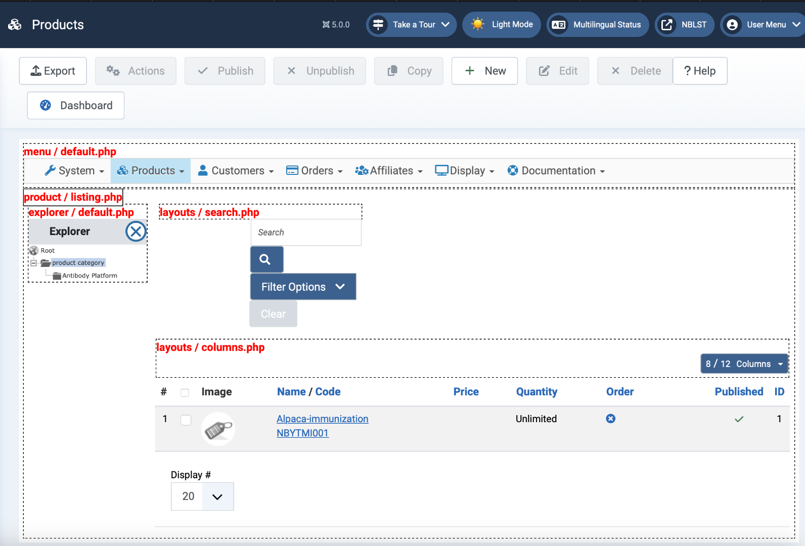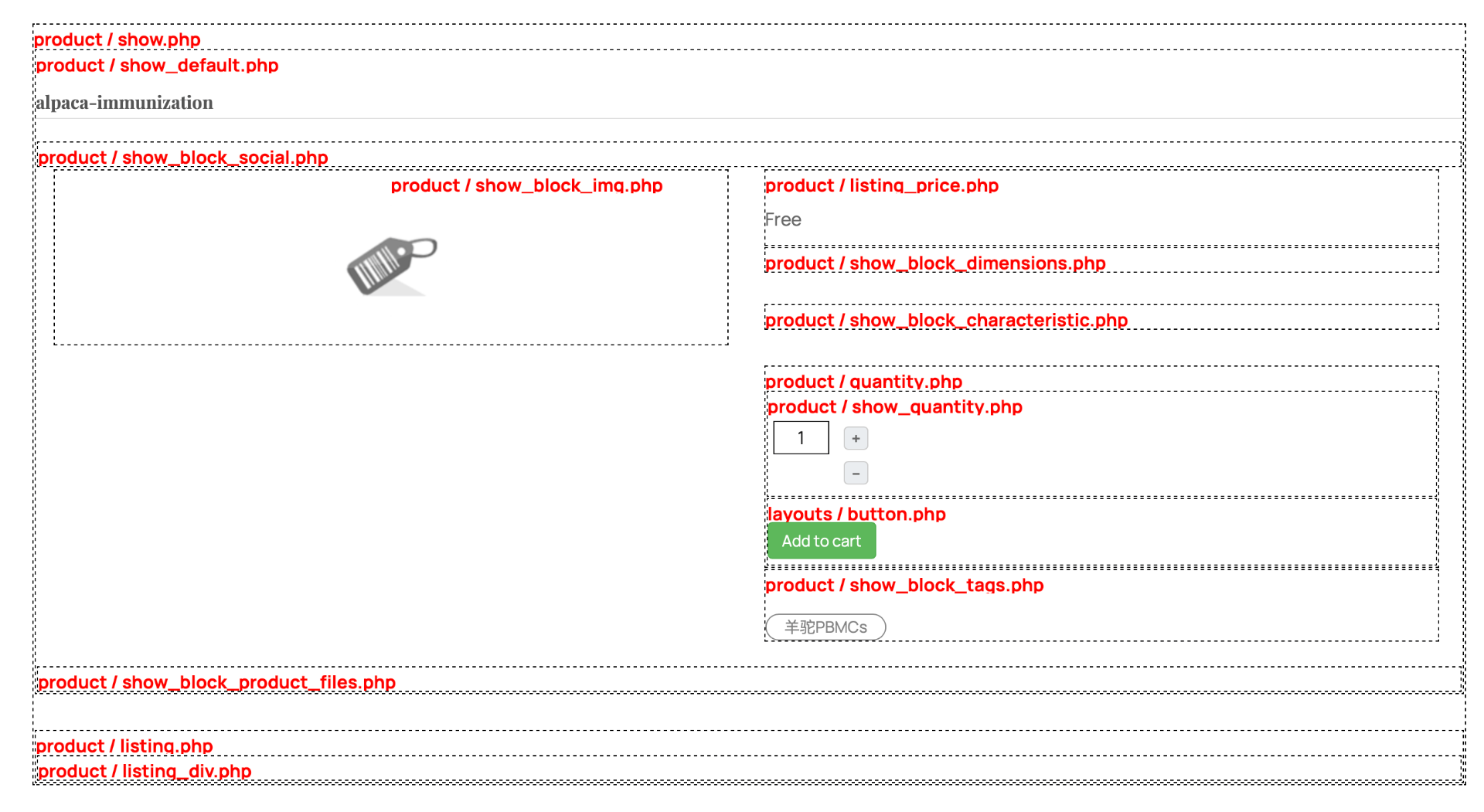 This display mode allows you to find which view files are used where. It is possible to activate and deactivate it with the "Display view files" setting of the "advanced" tab of the HikaShop configuration.