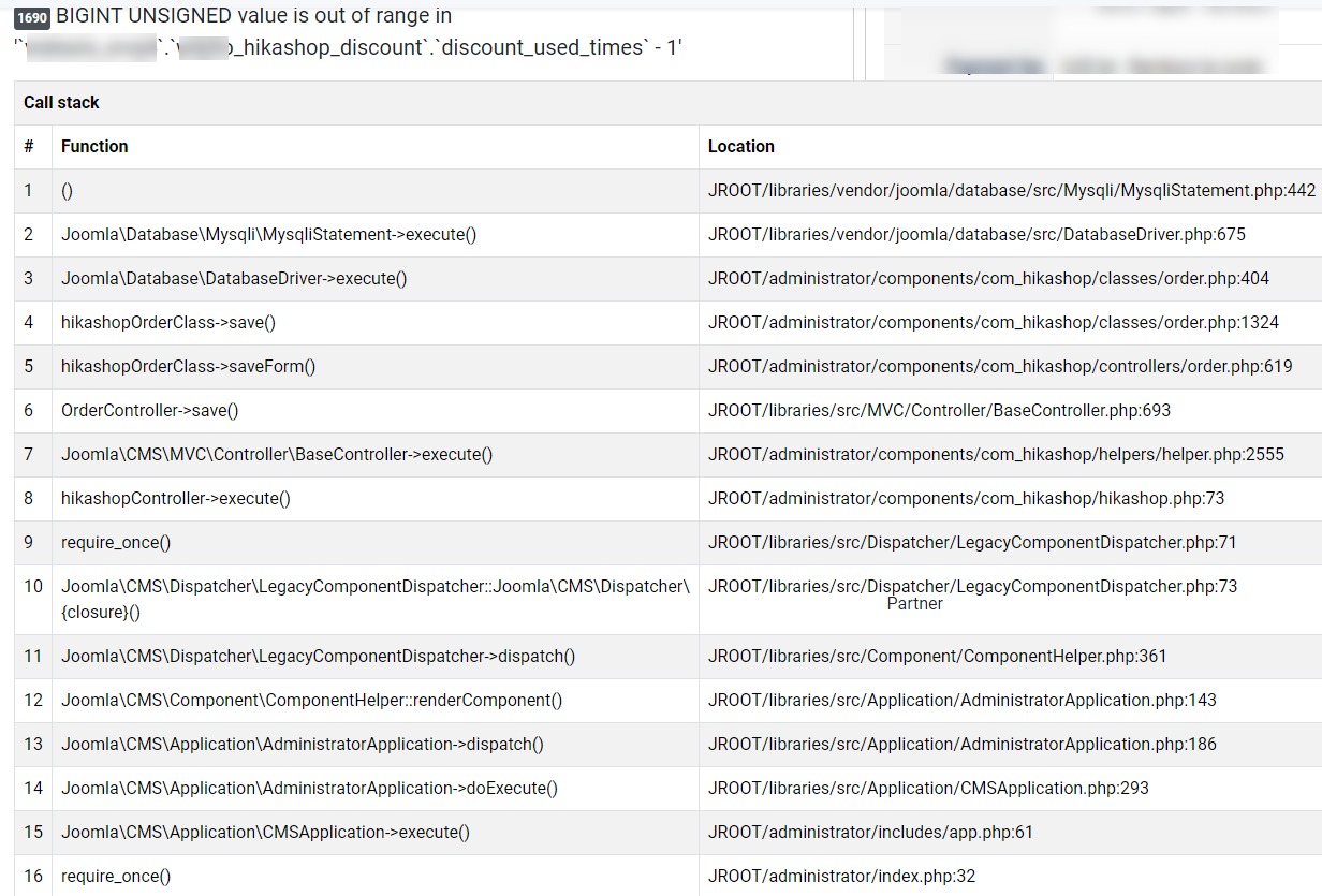 $query = 'UPDATE '.hikashop_table('discount').' SET discount_used_times = discount_used_times - 1 WHERE discount_code='.$this->database->Quote($code).' AND discount_type=\'coupon\' LIMIT 1';to: