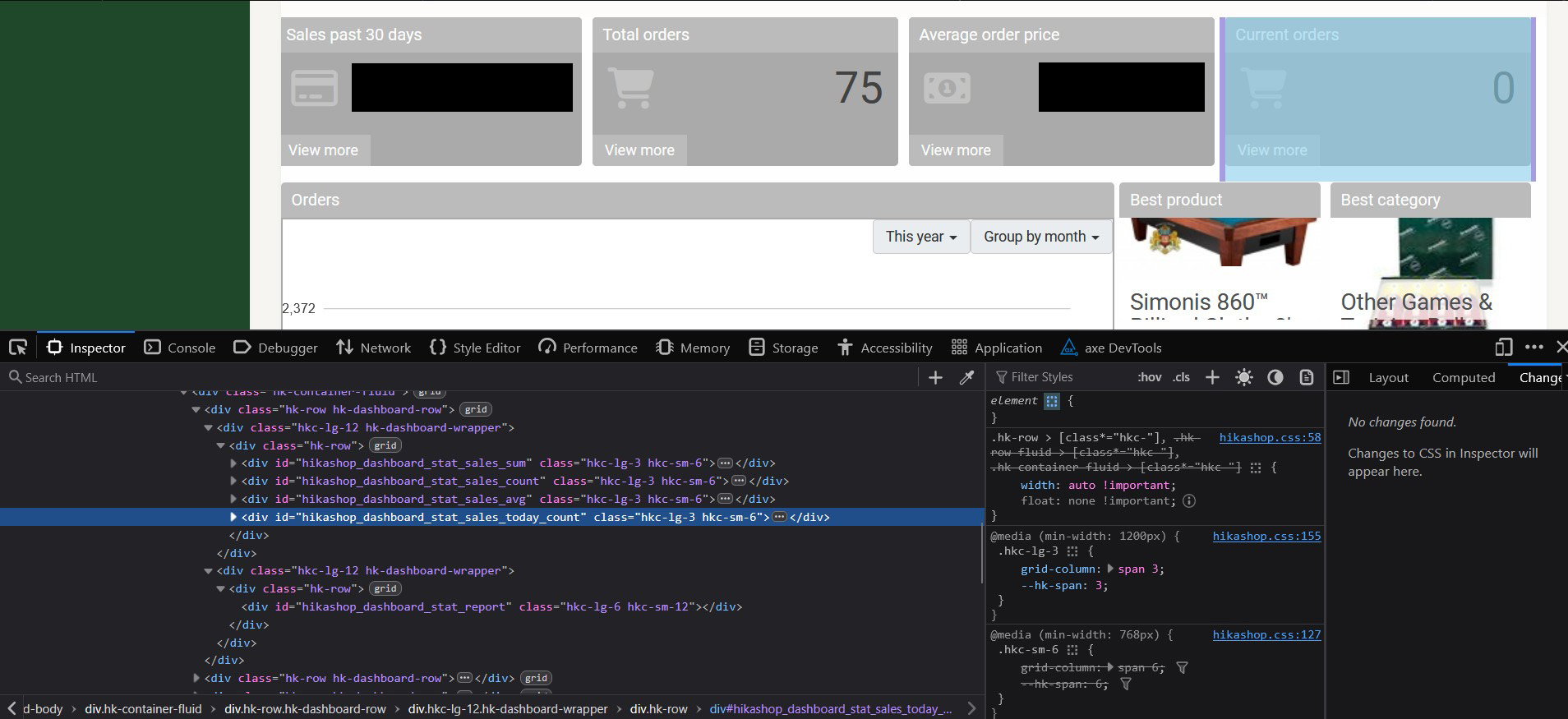 We've started updating some sites to 6.2.0 and noticed a layout change on sites using the HikaShop dashboard. In 6.1.1, our order stat tiles displayed as four columns in a single row. After updating to 6.2.0, the last tile now wraps onto a second row. This appears to be caused by the introduction of the hk-dashboard-row / hk-dashboard-wrapper structure and the way the dashboard grid is now split into separate rows. In 6.1.1 each tile was a direct child of the container, allowing all four tiles to display in one row. In 6.2.0, the tiles are grouped into separate hk-dashboard-wrapper divs with hkc-lg-12 classes, forcing them to stack vertically.
