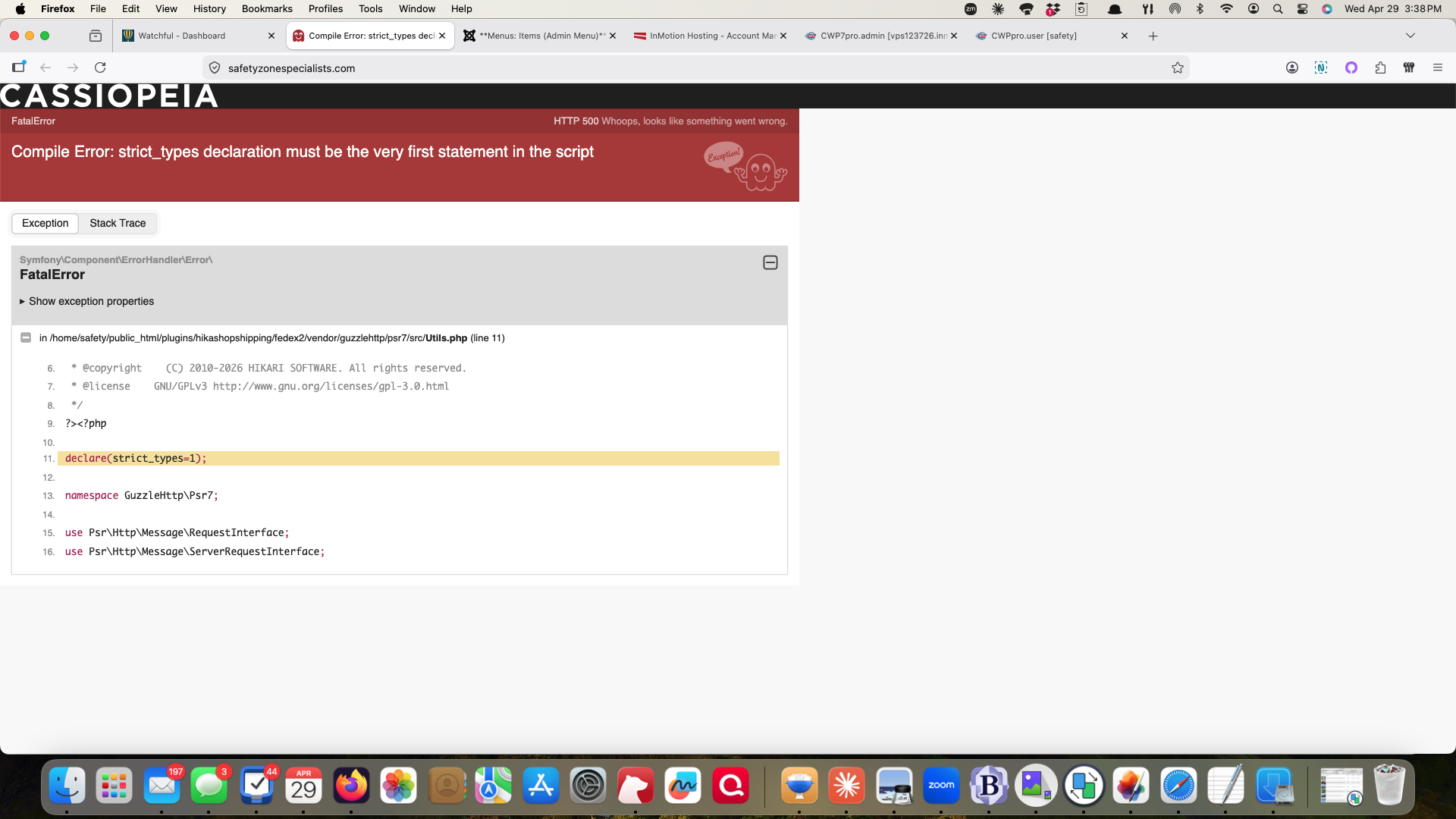 -- Error-message(debug-mod must be tuned on) -- : Compile Error: strict_types declaration must be the very first statement in the script