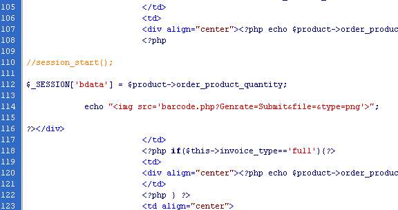 Originally the variables for the bar code were gathered via a $_POST but I knew what I wanted all of them to be so I got rid of everything except what needed to be 'bar codeized' (the product code or quantity).