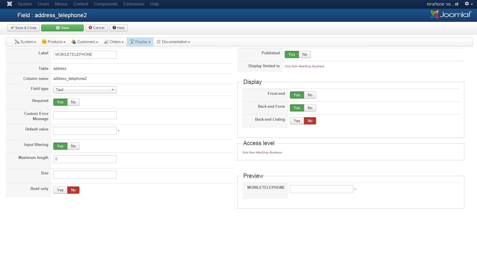 $fieldsClass = hikashop::get('class.field');