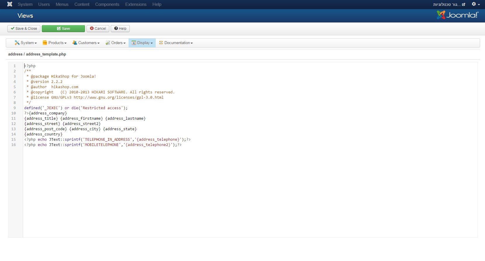 $fieldsClass = hikashop::get('class.field');