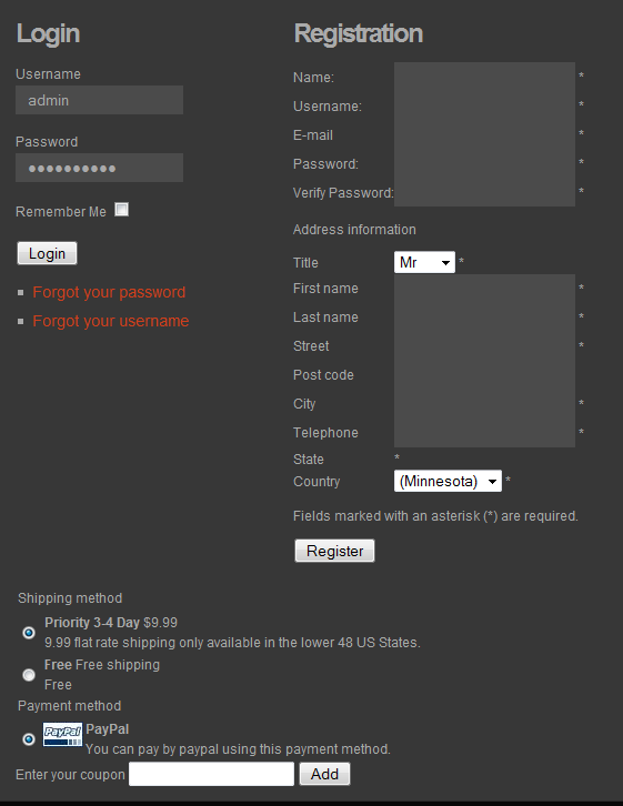 I can see the paypal method while not registered/logged in, but when I login/register on your website, I don't see it.
