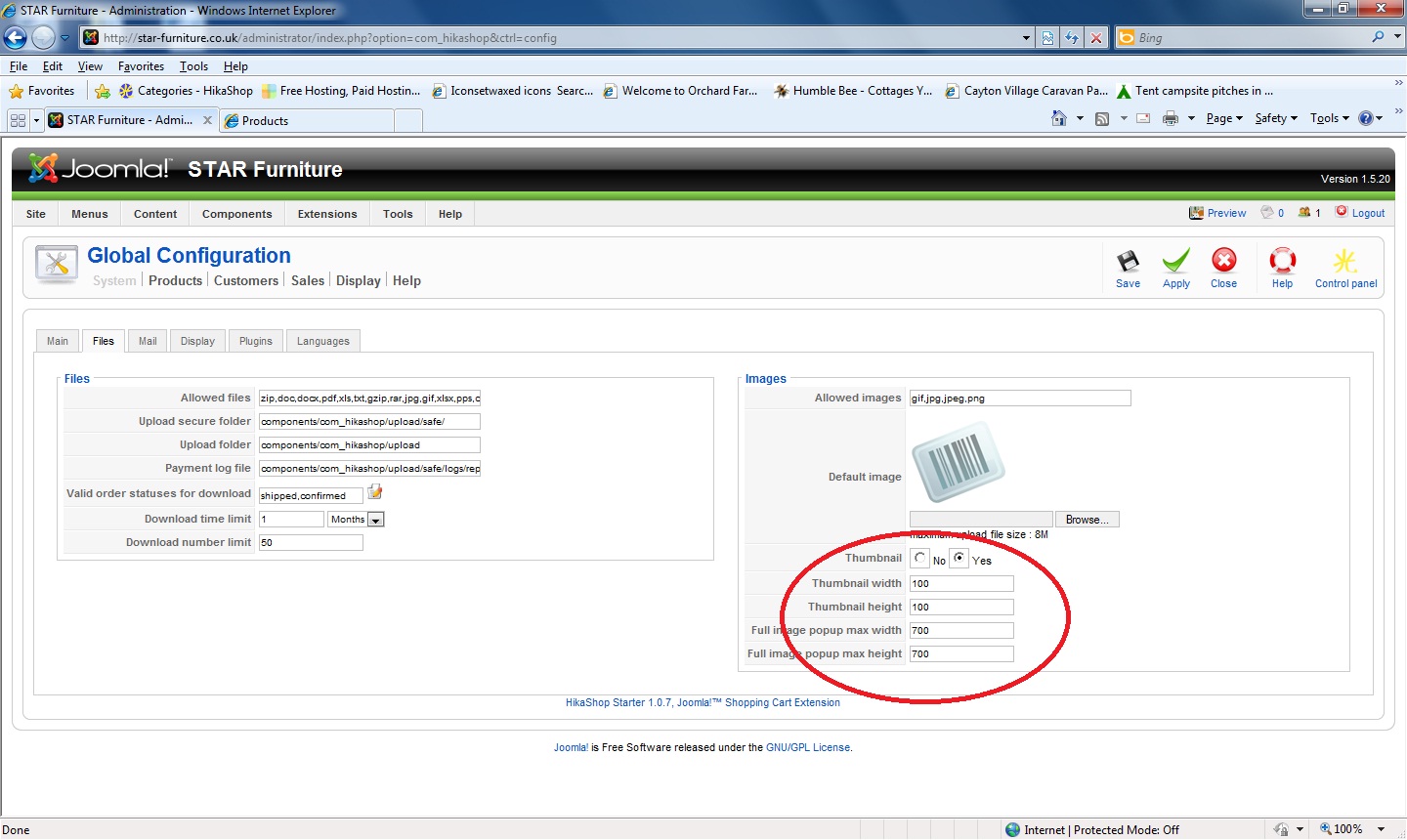 Hi, in Global config>files i have set the pop up image max width and height to max 700, but images are still showing as being very big, check out these images for example: