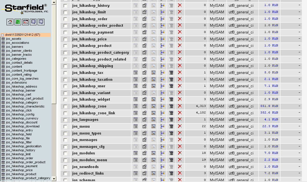 I went back and looked, and my prefix is actually "jos" instead of some random numbers. Here are some screen shots of my phpmyadmin...
