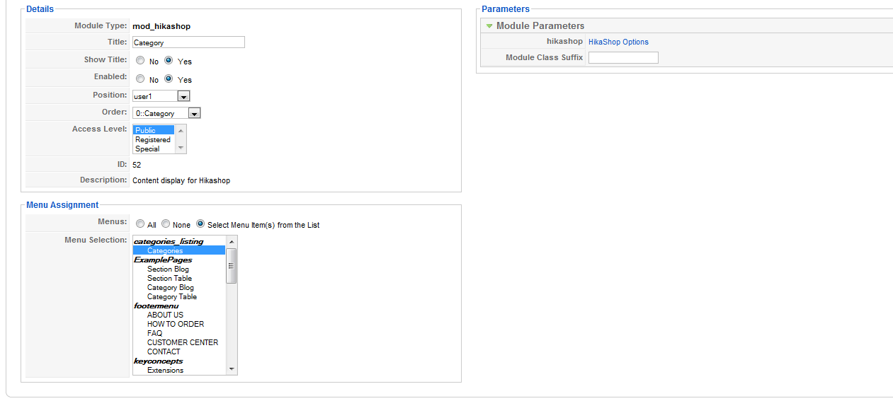 I tried to follow the tutorial which enable to add a module displaying a listing of categories on the frontpage ( www.hikashop.com/support/documentation/6...ml#categories_module ). I created module in Hikashop with Type = Category, Layout = List, and choose a position (like user1), but it did not show the list of categories on the frontpage.