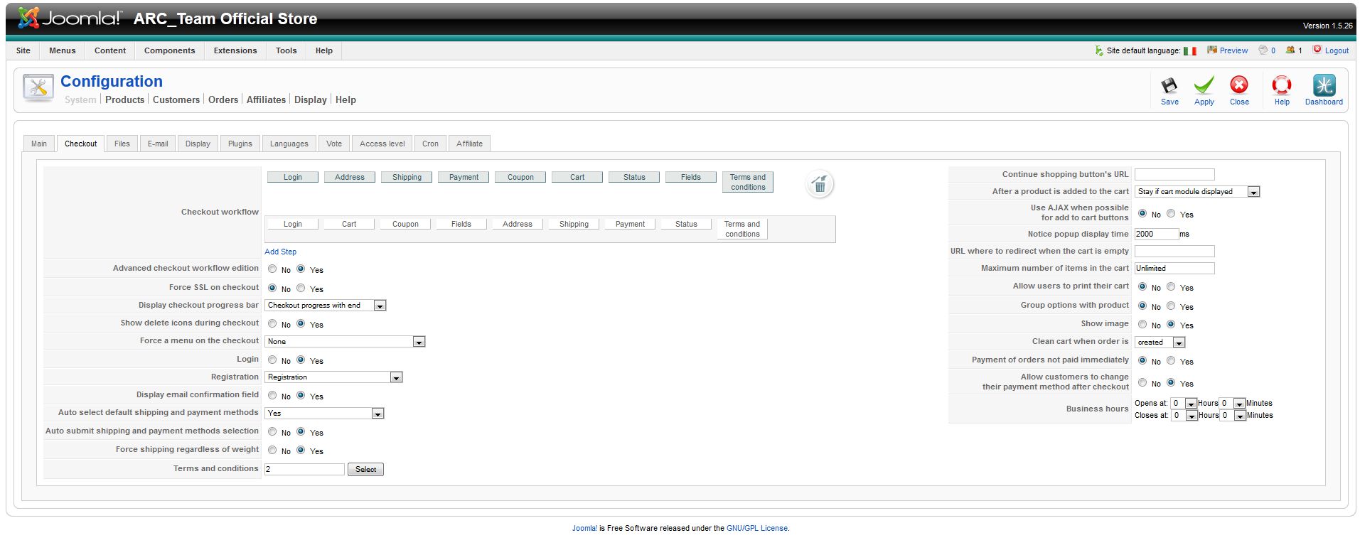 - Go to "Hikashop->System->Configuration->Checkout"