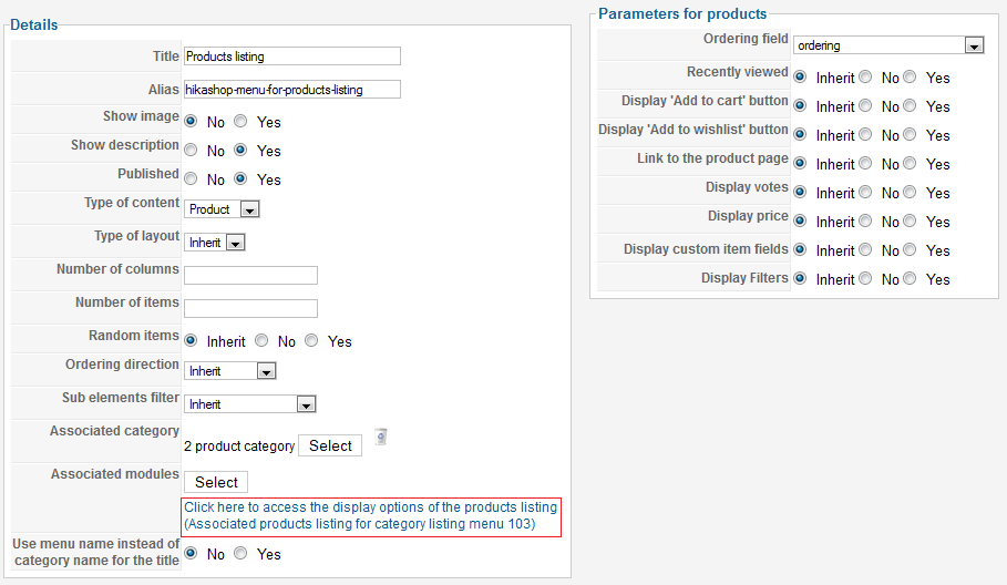 To get Categories listing to inherit settings