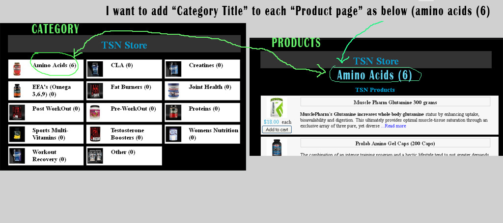 Example: when customer clicks on "amino acids category" ... all amino acids products apear under the heading "Amino Acids".