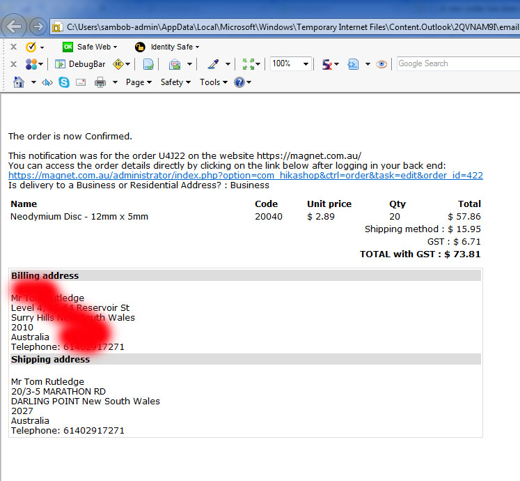 I am wanting to remove the Billing Address from the email notification for the recieved order; or put the shipping address at the top