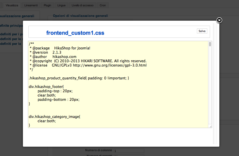 As explained in the documentation link Eliot gave you, you can add that code in the frontend CSS file of HikaShop via the Display tab of the configuration.
