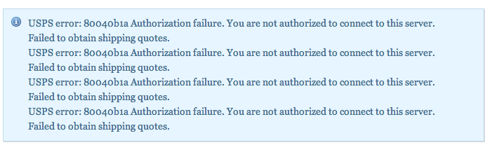 Thanks, much better! Now it's showing selectable USPS shipping options. However, when I tested it, right up at the top I'm now getting two new error codes: