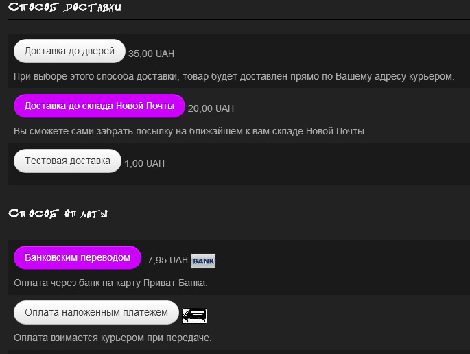 Please also see screenshot of web site before the upgrade (you may see buttons of selected items are highlighted with some color, so customer can easily see what is his choice of payment and shipment methods):