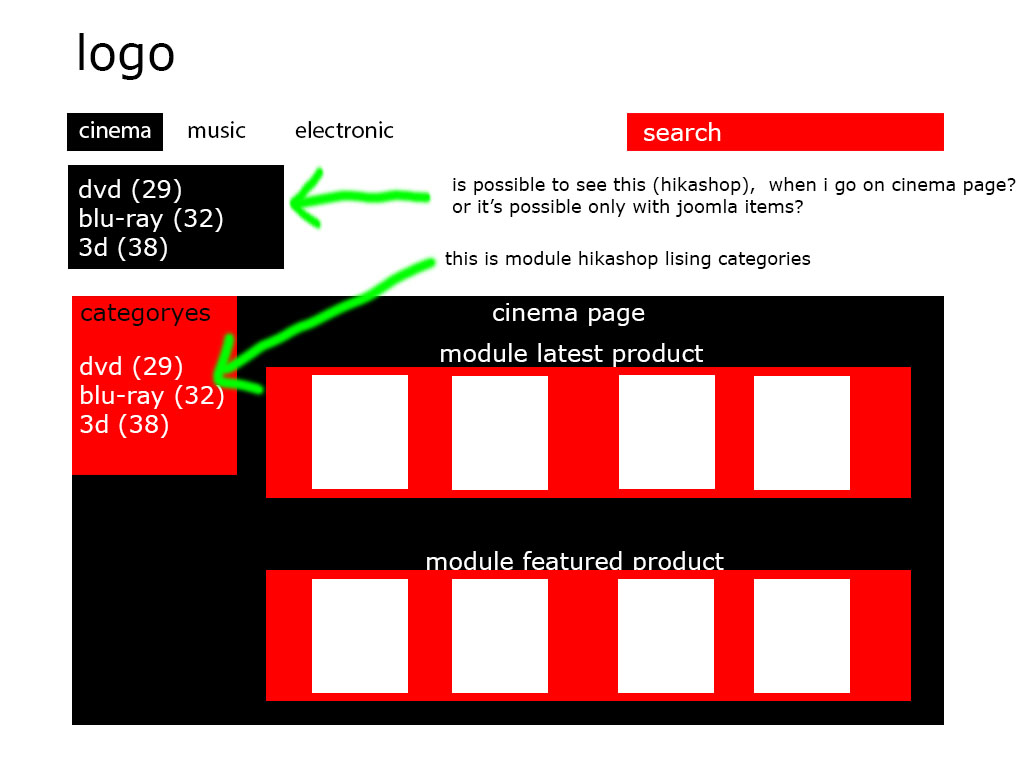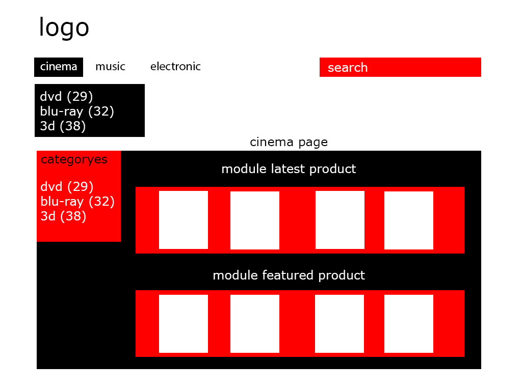 3. when i go in cinema page, i would see only modules with: one latest dvd products, one latest blu-ray products .. etc.