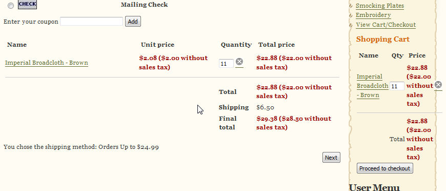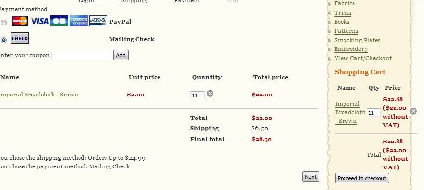 That would be a problem for me, adding several fabrics to a shopping cart, each fabric having numerous colors, it would make for a very crowded shopping cart. It is much better adding one product, with 73 variants - but the problem then comes with having to first add the 73 colors as characteristics, then going back and editing each variant and adding the name manually.