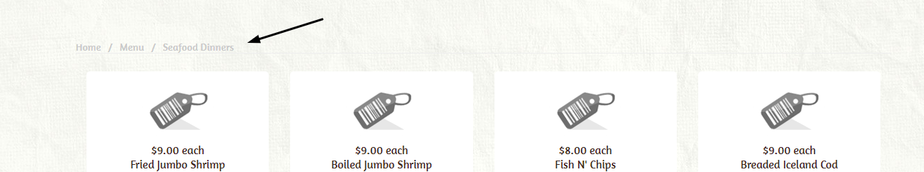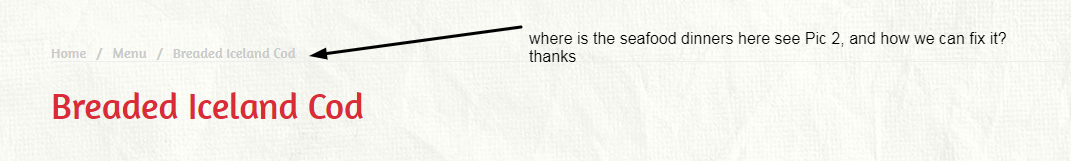 when i click on the menu then i choose seafood dinner as the pics will show you then i choose one product the to go back to the category that mean you have to start from the menu why not from the where i was ?