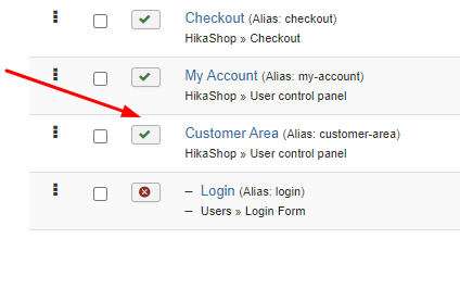 this is after I opened the customer area menu configurations