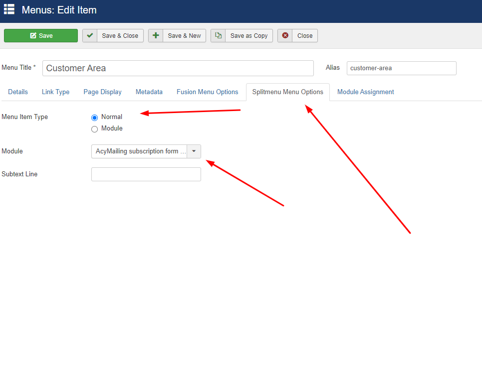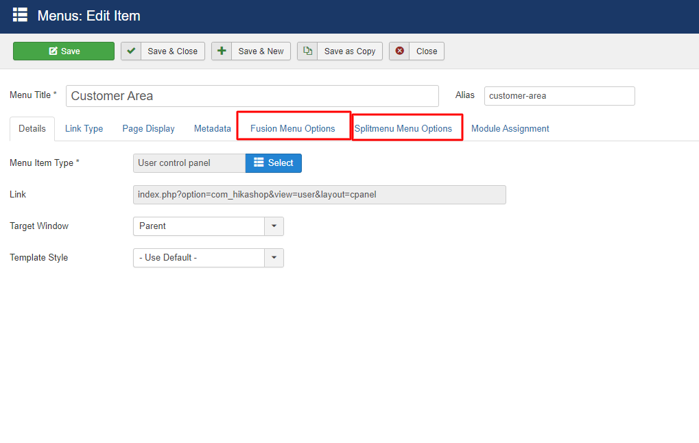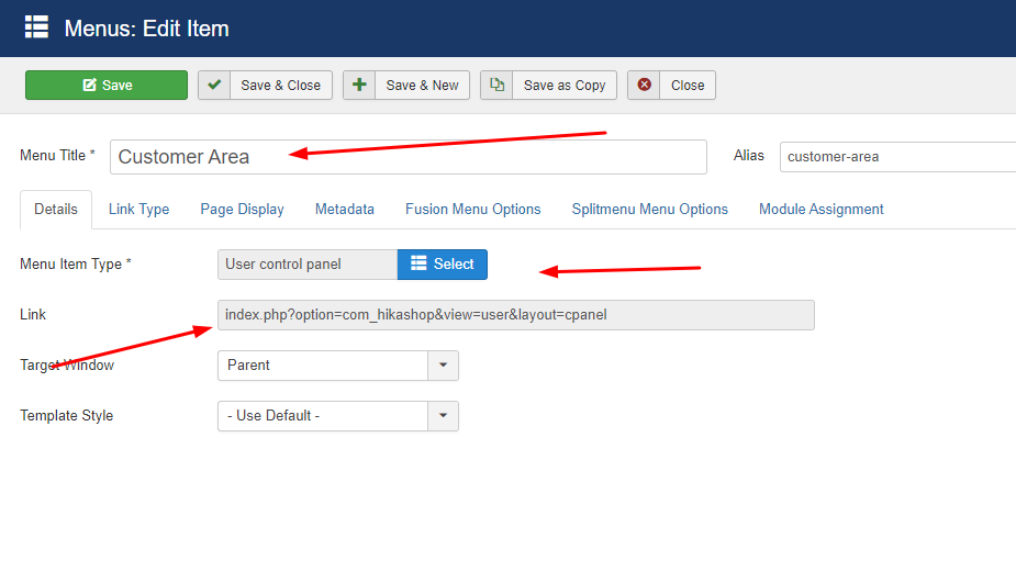 this is the menu item Customer Area