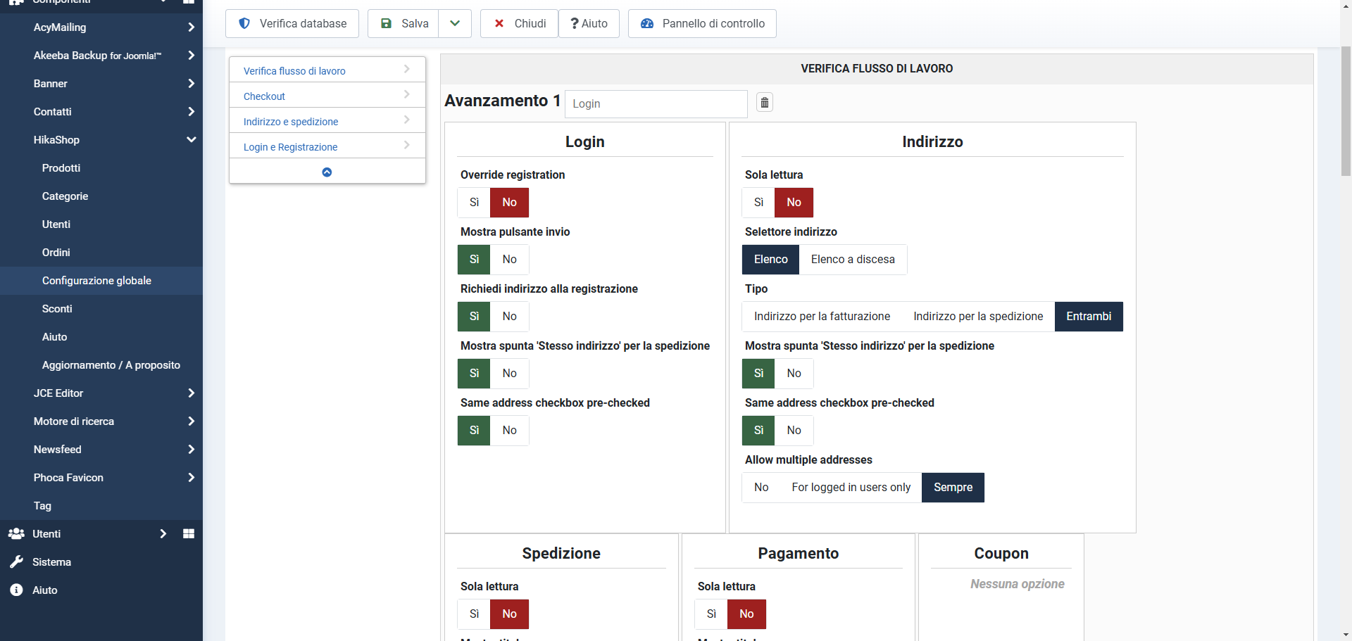 The PayPal Pro payment plugin available by default in HikaShop also allows for it but that service is not allowed by PayPal in Italy either.