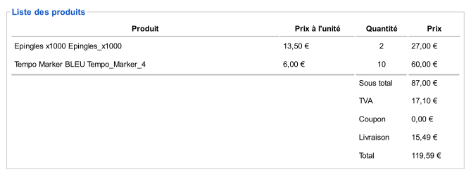 et que vous rajoutiez une ligne pour l'envoi du prix total: