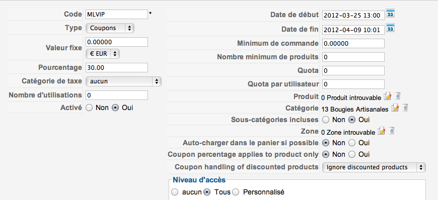 Concernant le fait que les produits utilisent la réduction peut importe leur catégorie je vois qu'il manque tout simple le code vérifiant cela. Il faudrait essayer de rajouter le code: