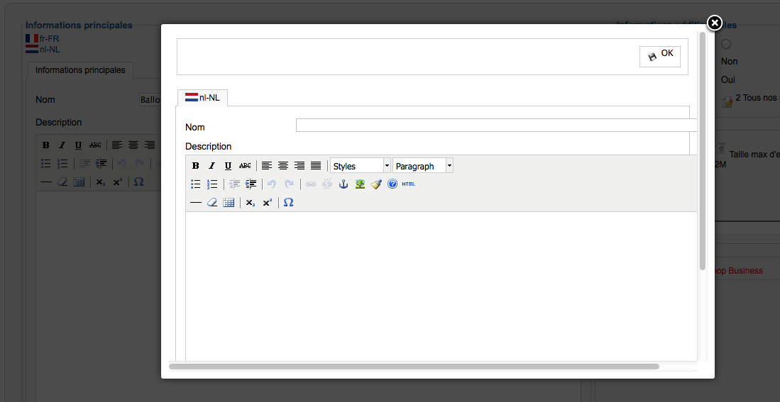 Lorsque j'édite une catégorie ou produit afin de lui ajouter la traduction, après avoir choisis le drapeau associé à la langue, la sauvegarde n'est pas prise en compte et tout les champs sont vides.