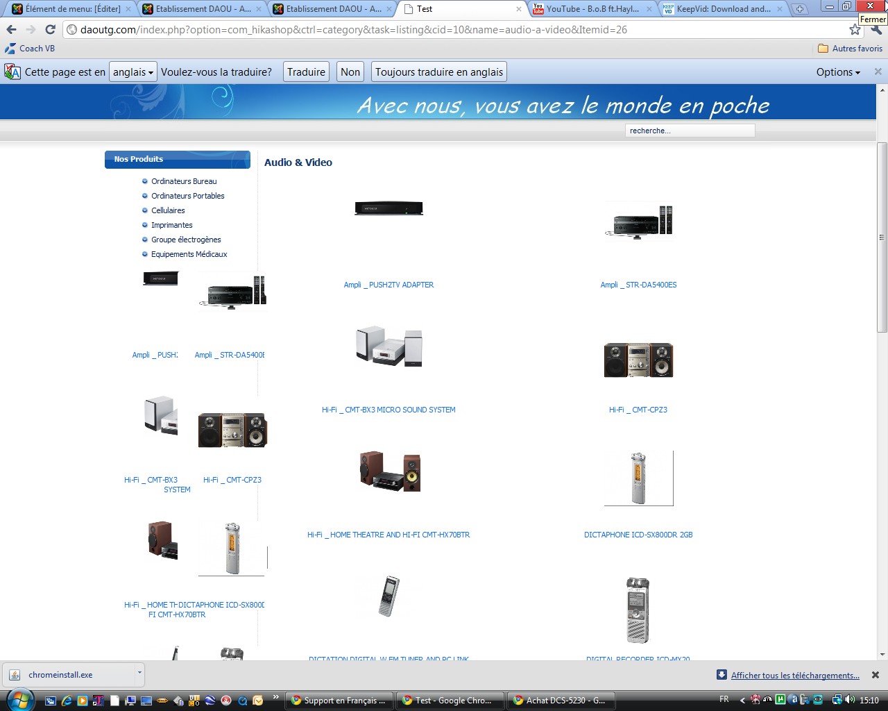 2/ Le fait que vous ne voyez pas les produits après avoir sélectionné une catégorie dans la partie publique de votre site est normal si vous n'avez pas configuré de module associé au menu de listing des catégories. Quand vous créez un menu de listing de catégories, il faut que vous alliez ensuite dans les options du menu (à droite vous avez un lien avec écrit "HikaShop Options" quand vous éditez un menu de catégories). Après avoir cliqué sur ce lien, vous devez ajouter un module de contenu dans l'option "modules associés". C'est ce module, qui affichera les produits. Ce module devra avoir son option "synchronisation" à oui. Pour vous simplifier cela, si vous sauver les options HikaShop d'un menu de catégories sans sélectionner de module associé, le système vous proposera de créer automatiquement un module associé pour l'affichage des produits, si vous utiliser au moins la version 1.1.1 d'HikaShop.