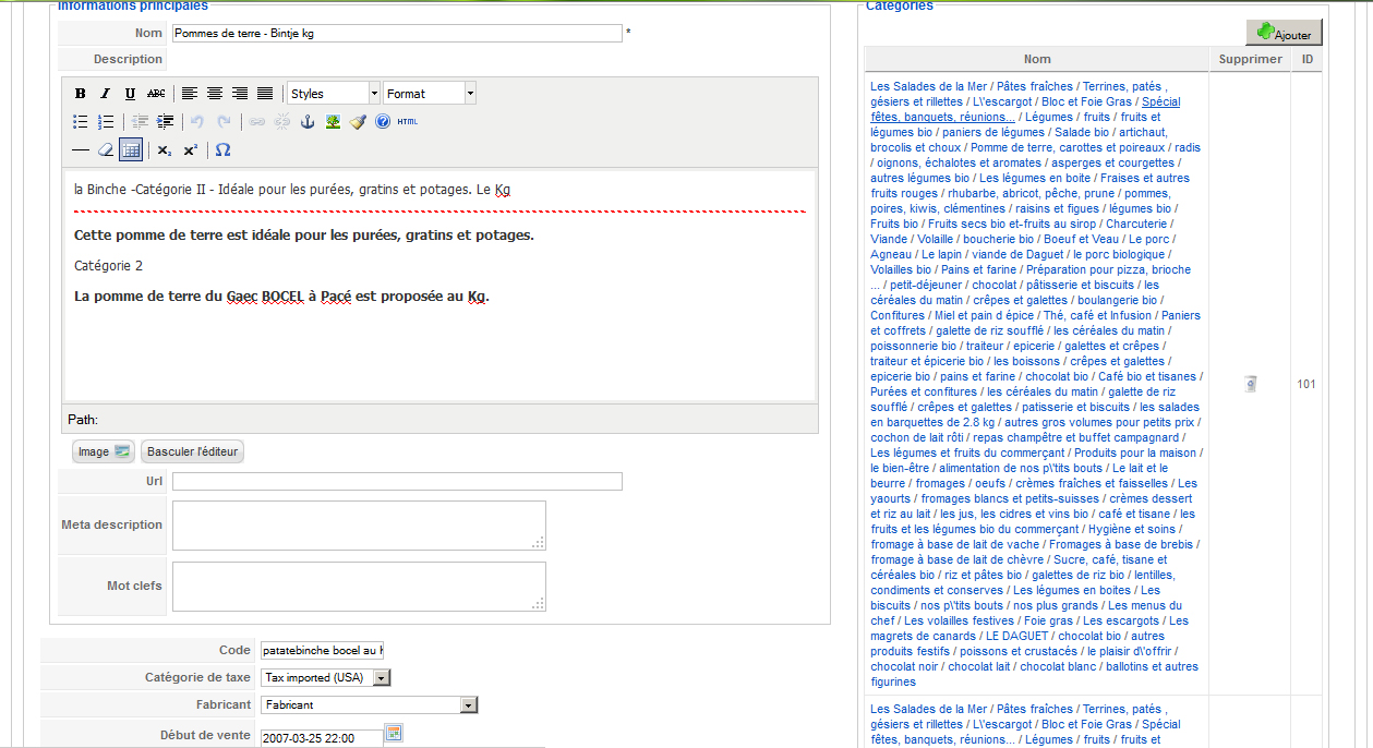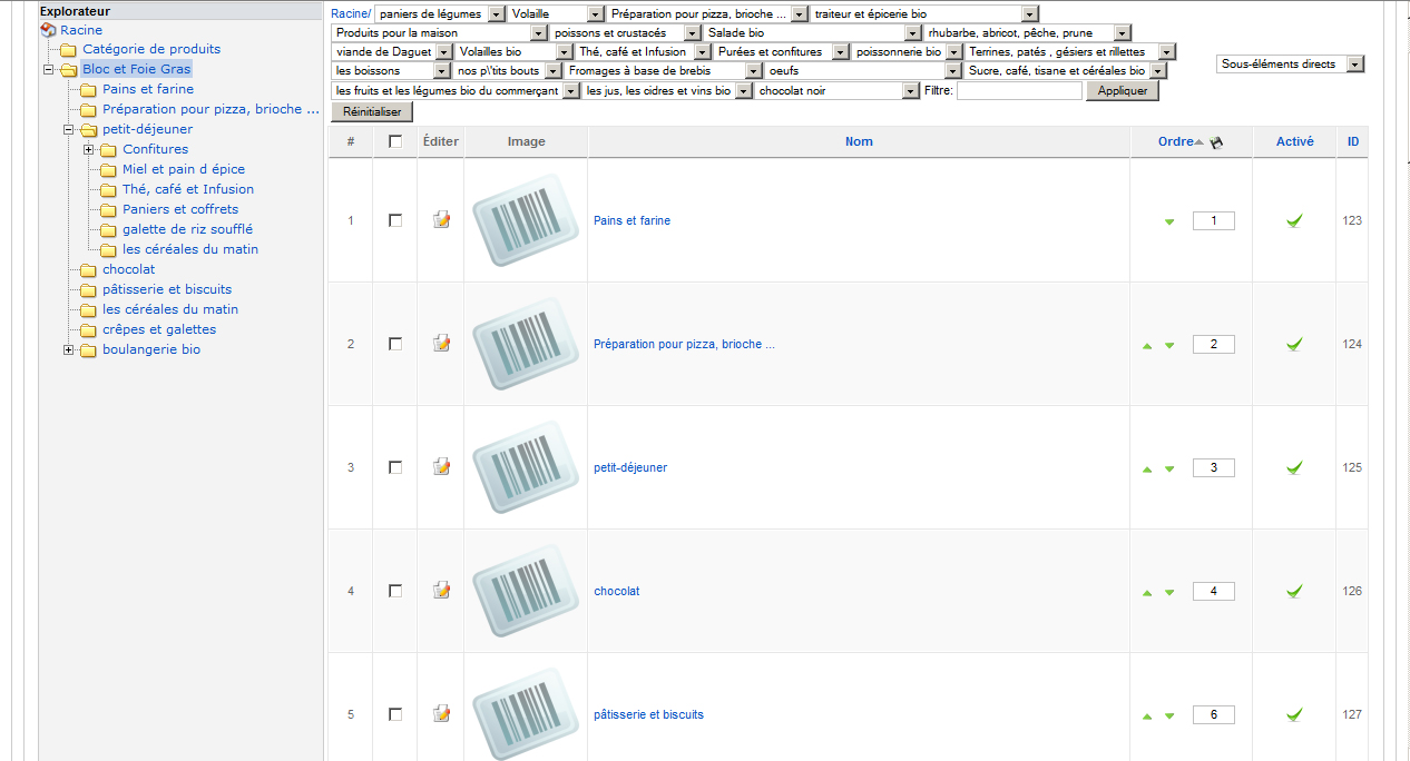 Dans le cas présent, j'ai changé la valeur de category_parent_id pour l'entrée sql "bloc de fois gras". Voilà le résultat à l'affichage -> des sous-catégories qui n'ont rien à voir avec la catégorie parente :