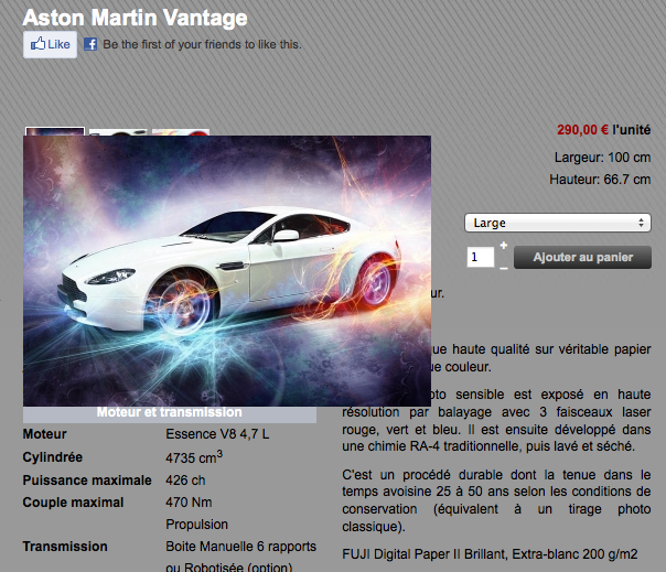 Exemple de produit qui présente cette particularité :http://digitalartconcept.com/index.php/online-store/produit/4-aston-martin-vantage/category_pathway-13