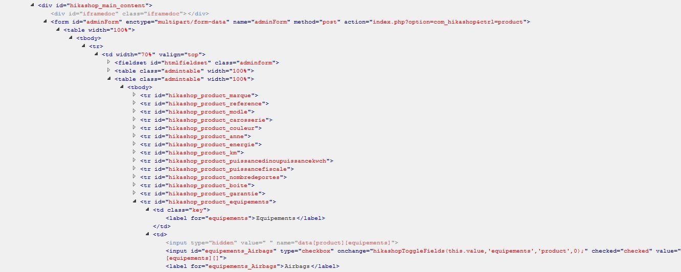 Désolé, je ne me suis pas bien exprimé. Je voudrais modifier l'affichage du champ personnalisé de type checkbox en back-end, dans la page de saisie des produits d'hikashop et non pas en front-end.