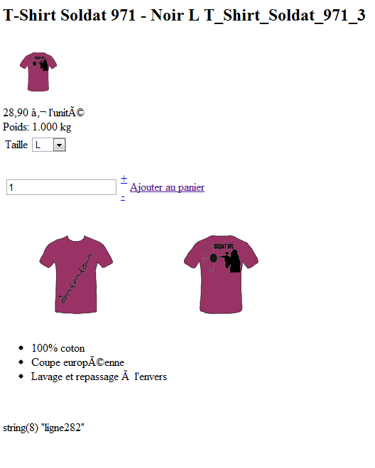j'ai affiché la page de consultation du produit, l'erreur se produit, mais pas mon "test".