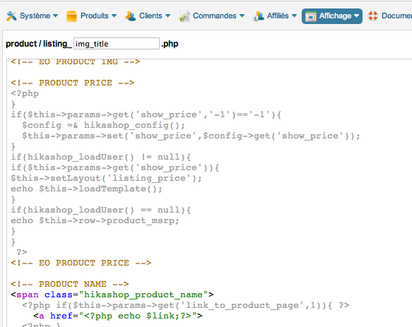 Cela va l'afficher pour les utilisateurs non enregistrés, pour les enregistrés changer "hikashop_loadUser() == null" en "hikashop_loadUser() != null".