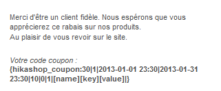 Par contre, ce que nous pouvons vous proposer c'est de modifier légèrement le code du plugin HikaShop pour afficher un message à la place du tag.