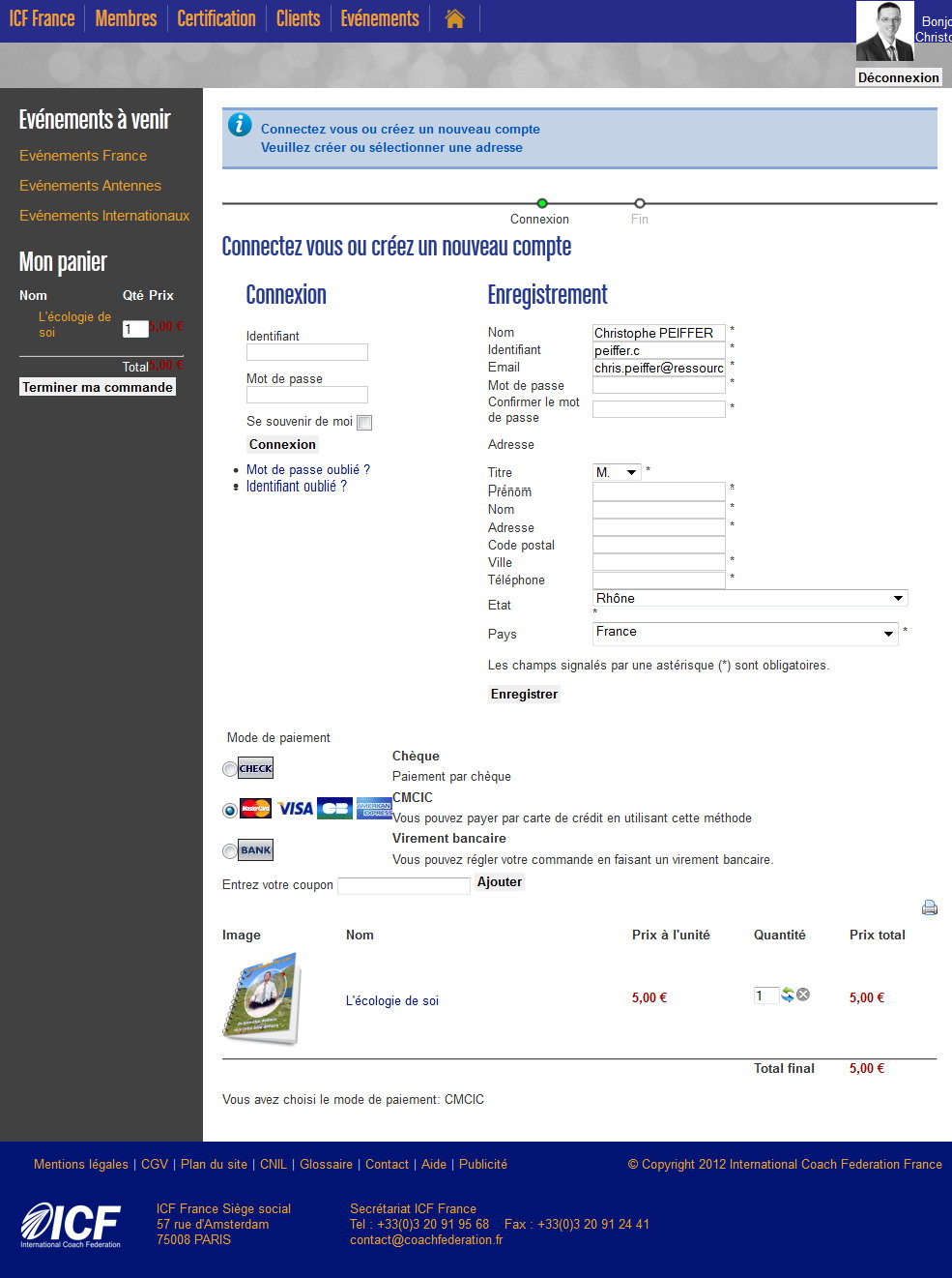 Vous noterez qu'en haut j'ai bien la ligne "Déconnexion" qui montre que pour le site je suis déjà connecté