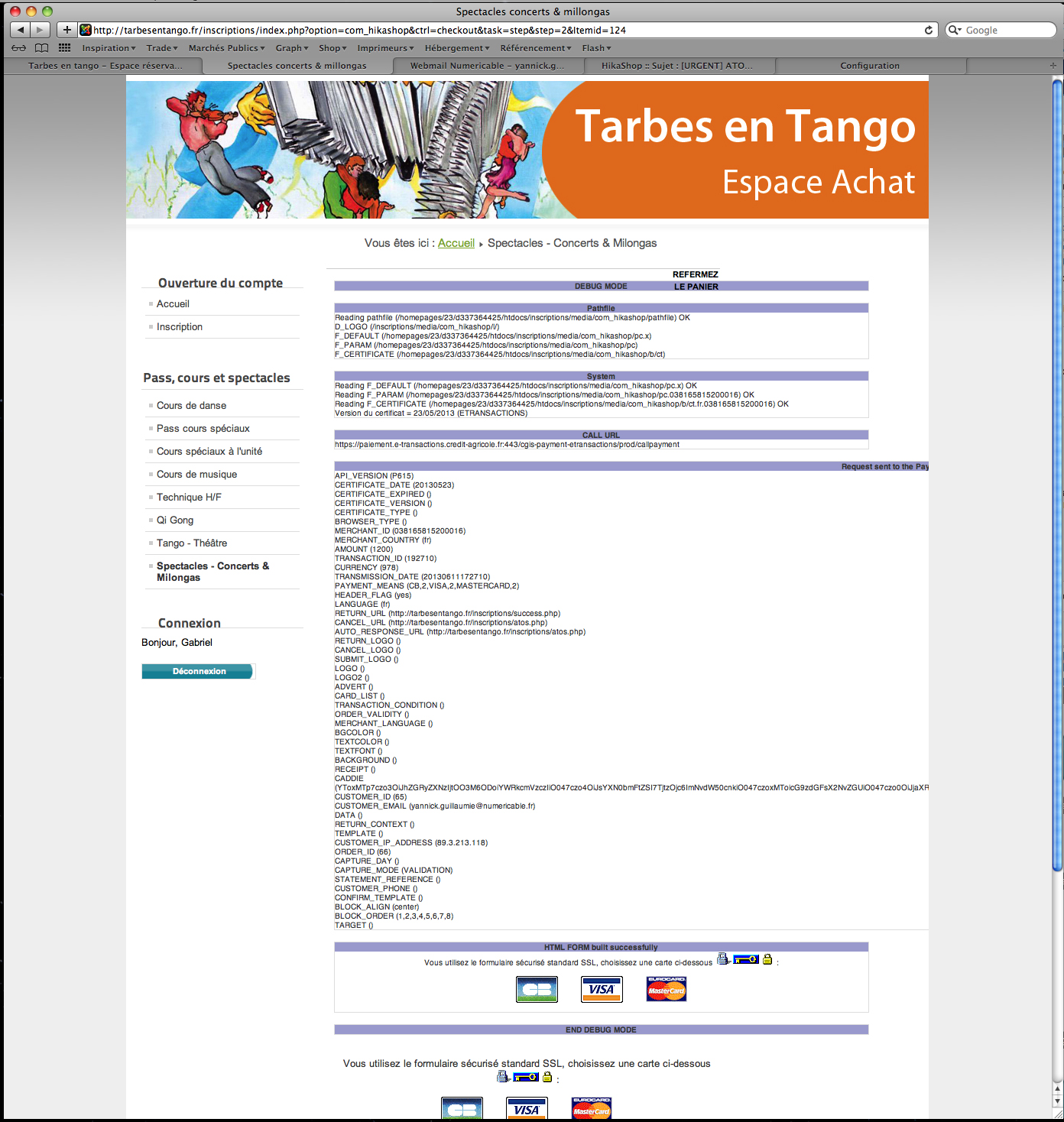 Je viens d'activer l'option Débogage du plugin SIPS ATOS, je ne sais pas trop ou récuperer le fichier log mais voilà ce qui ressort sur mon écran