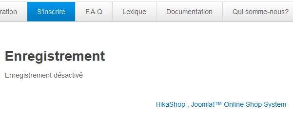 Pour ce qui est du message affiché, HikaShop utilise le système d'enregistrement Joomla, donc si vous l'avez désactivé dans Joomla, il ne fonctionnera pas plus dans HikaShop.
