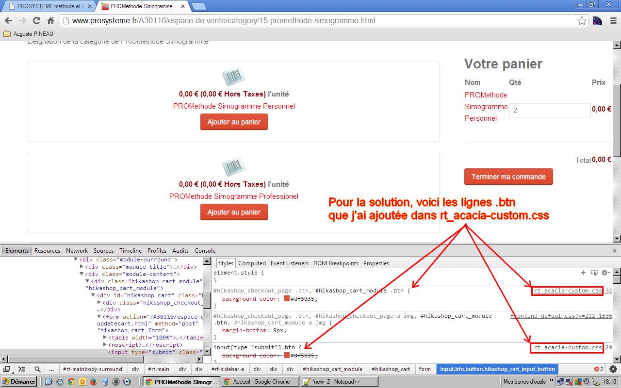 Nota : Modestement j'apprend à manipuler de mieux en mieux les .css pour ajuster les styles de feuille standards hikashop et les nouveaux templates de rocketthemes (exemple rt_acacia).