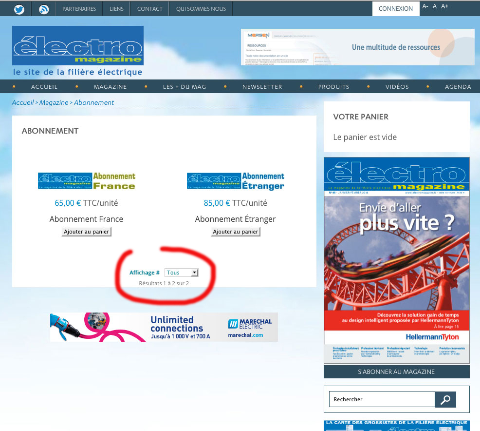 Je cherche à supprimer le bas de page "affichage" (image 1) mais à garder la navigation quand j'ai plusieur page (image 2).
