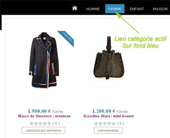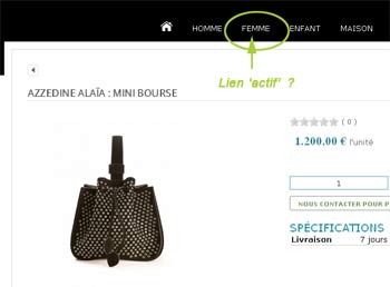 Alors effectivement, le lien-menu - correspondant à une liste de produit d'1 seule catégorie - reste actif, même quand nous sommes sur une fiche produit.
