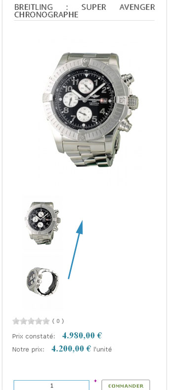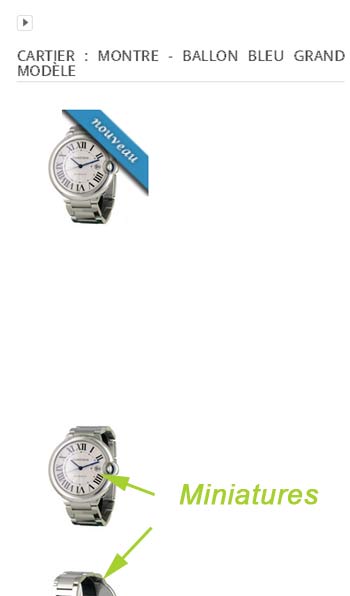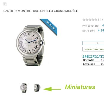 La gestion des vignettes ou des images miniatures en dessous de la grande dans la fiche produit.